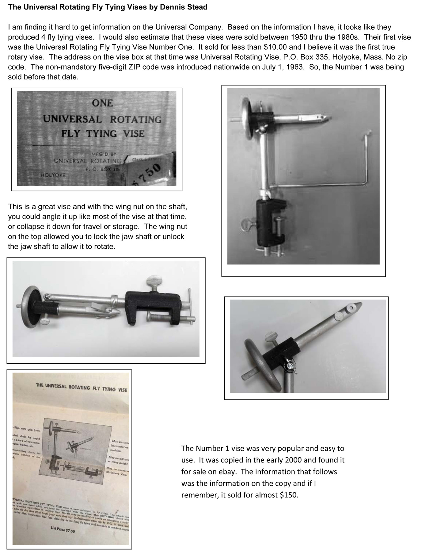 I have just added a PDF download to our web site. If you would like to read about this company and their rotary vised, download it. Then maybe you can give me additional information on the Universal Vise Corporation.