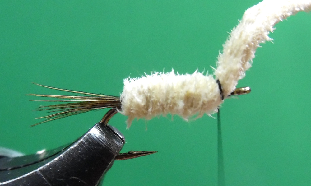 Another Pat Dorsey fly from his book, Tying & Fishing Tailwater Flies, called the Buckskin. Seeing how I have a lot of Chamois Strips, this was a fly that I wanted to tie and try. To me, it looks like a maggot with tail. Pat said it imitates caddis larvae. In his recipe, Pat calls out Brown hen hackle but I am using the hackle from pheasant feathers. On the head, I used UV Resin. Pat also ties two variations off this pattern, a Bead-Head Buckskin and a Mercury Buckskin which I will show at the end of the tying steps. These two variations uses a different hook, Tiemco TMC2487, I used the TMC2499BL. The Bead-Head Buckskin used a gold brass bead with not tail and the Mercury Buckskin used a glass silver lined bead (Killer Caddis Bead) and the thorax is peacock herl.