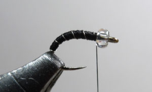 In Pat Dorsey’s book, “Tying and Fishing Tailwater Flies”, he has a number of flies that will work almost anyplace.  We all know about the Dorsey’s Top Secret Midge that John Bush ties and fishes with great success.  Dorsey’s flies catch fish and we have a number of his flies on our web site.  The Mercury Zebra Midge is another you should have in your fly box.  The Killer Caddis Glass Bead represents an air bubble.  A simple fly to tie.  This fly pictured was tied on a Tiemco TMC2499BL-SP size 18.