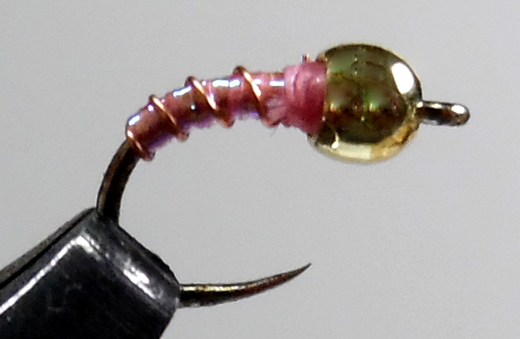 The Primrose and Pearl Midge is also called a P&P midge. I used pink thread but I have seen another recipe call out Primrose thread 14/0. An easy fly to tie and have seen this fly in the fly boxes of the Taneycomo guides.