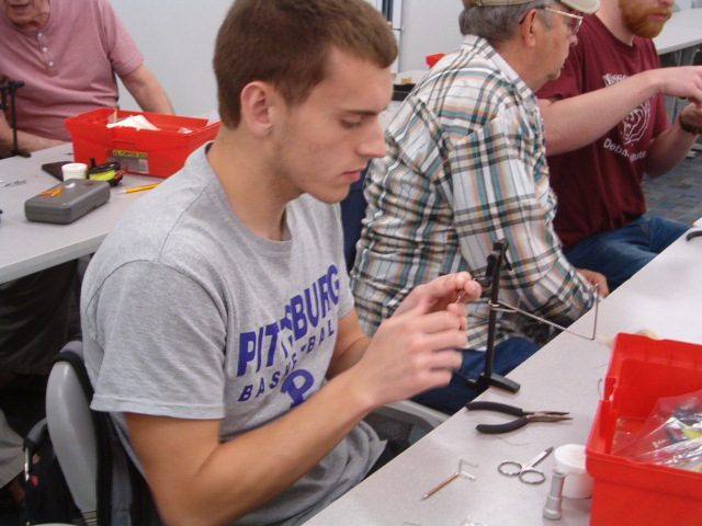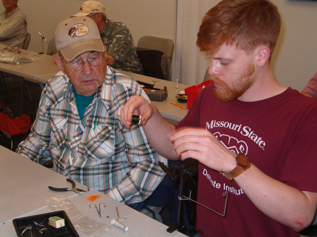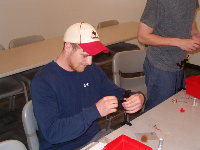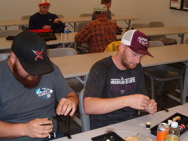 Our chapter of the Missouri Trout Fishermen’s Assn teaches Basic Fly Fishing classes at MSU in the spring and fall. The classes cover casting, tying flies, knots, fishing technique, fish behavior in relation to prey, and sportsmanship. We have four regular classes and two fishing classes. It’s a lot of fun for all involved. More photos will follow as the class progresses. Here’s the second batch.