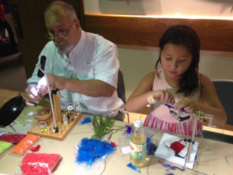 Insect-O-Rama: The MDC held it’s annual Insect-O-Rama on Friday, August 19. We participated again by tying flies on safety pins for the kids who attended. The kids love ’em and a few adults were eager for them as well. Attending were Patti Hayes, Dennis Stead, Ralph Eichholtz, Larry Wegman, Jerry Jester, his grand-daughter Kaylee, and I were all tying for the kids. Everyone seemed to have a good time. Thanks to Sam Stewart for the photos.