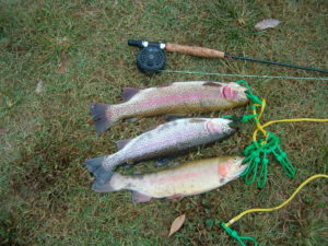 I’ve only fished there once before, Fred had fished there many times, Pat was a new fly fisher with only 2 or 3 hours of fly fishing time under her belt. The information we were given seemed to be true. I caught three nice ones that were 15, 16, & 18 inchers. Fred also caught three but I don’t think we measured them.