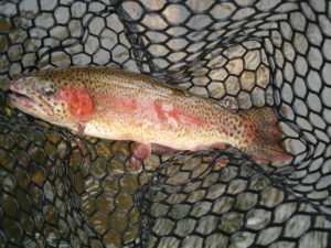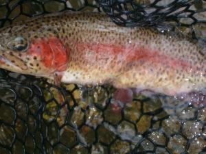 My score card was 12 to the net, 3 rodeo rides (8 seconds on the fly) with MTFA mid-stream releases, and lots of strikes that were less than 8 seconds or were never set in the first place. Larry Olson who would rather catch one trout on a dry fly than 5 fish on a wet fly (there is something good to be said about that fly philosophy), fulfilled his quest. Although, he did catch other fish from below the surface, the only one he cared about came off the surface. It was a good day. If you weren’t there, you missed an adventure.