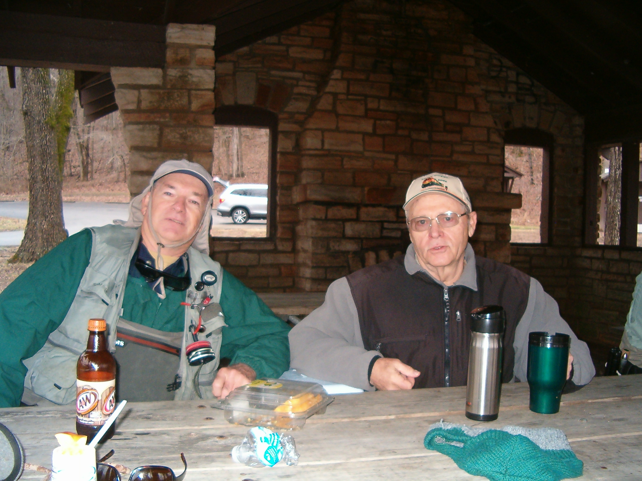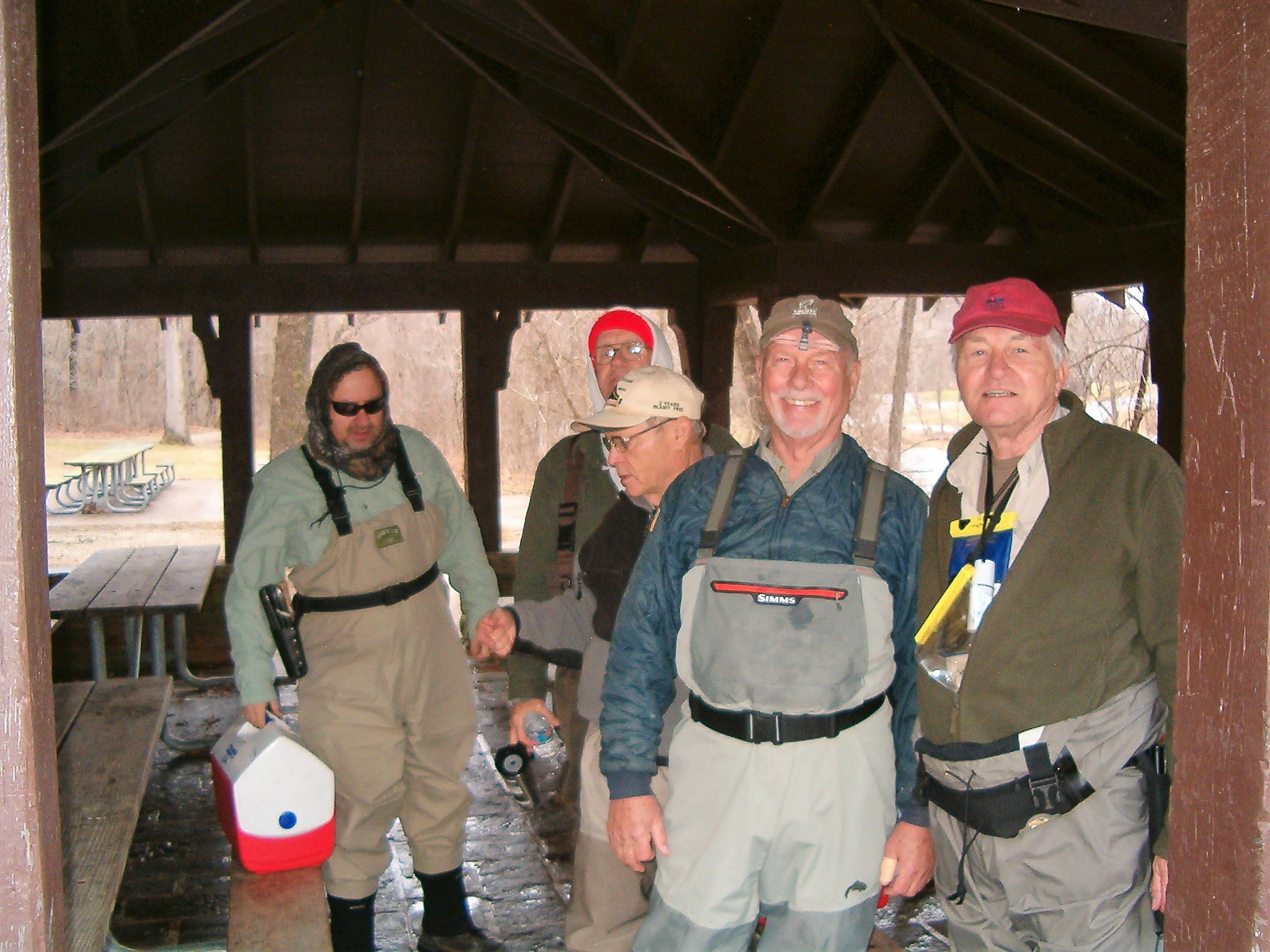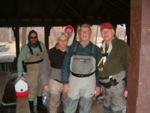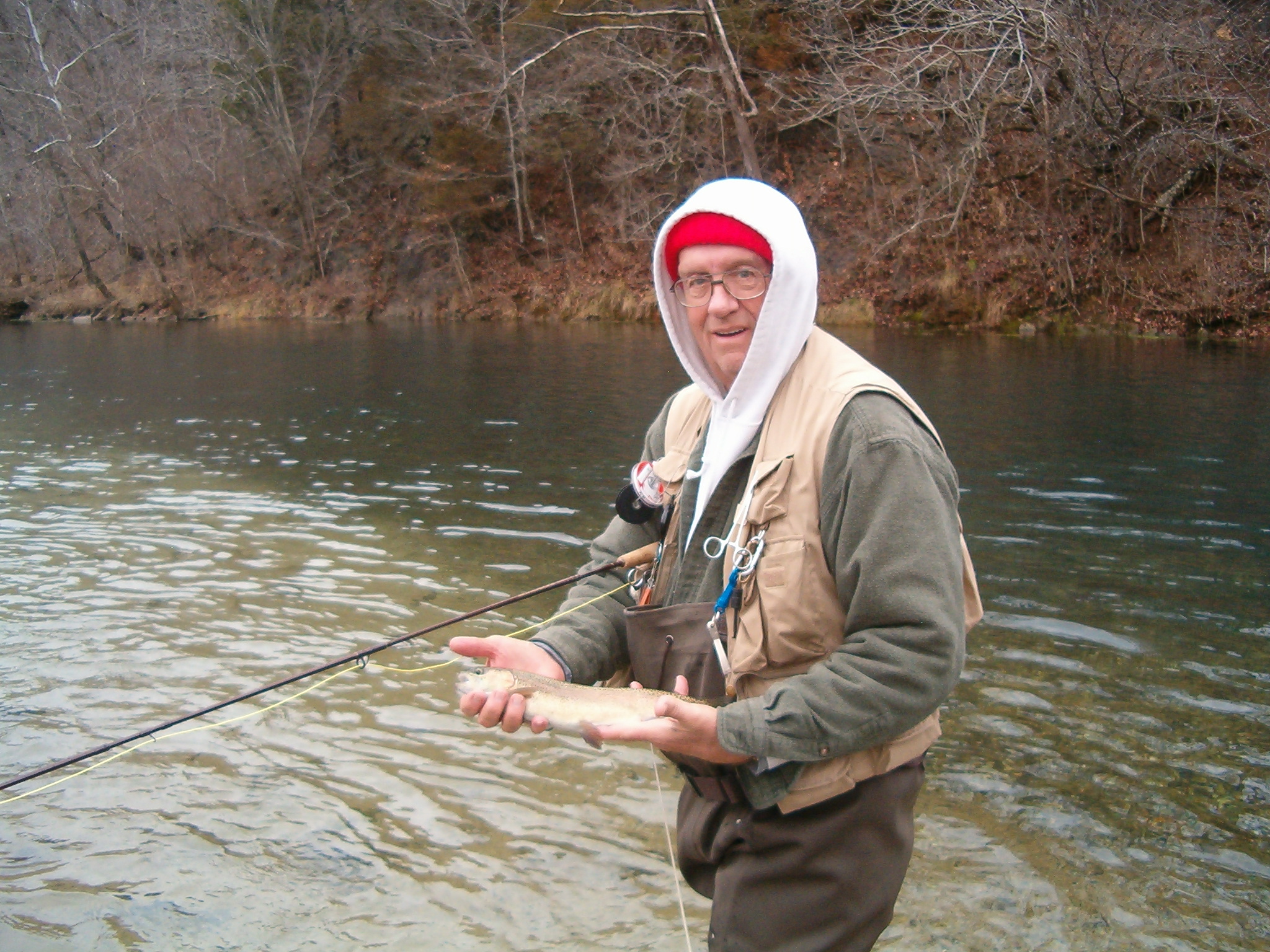 Six of us fished Bennett Spring on Monday. Harry Morgan, John Bush, Dick Solomon, Mike Kidd, Larry Olson, and myself braved the cloudy January skies to stalk the elusive hatchery raised rainbow. There was a near drowning as one of us got a little water in our waders. It wasn’t me this time. Beyond that, neither fish nor angler were harmed during the event.