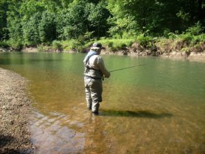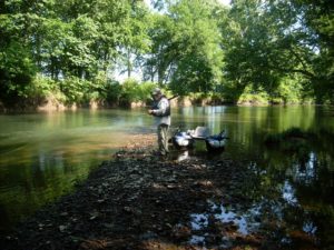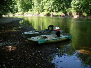 After dropping off vehicles to pick up the kayaks/pontoon when we finished the float, we ended up leaving Delaware Town at around 9:30 AM. The day was a very relaxed float and we all managed to catch a fish or 2. John Dozier caught a goggle eye, and Harry and John both caught 1 smallmouth and 1 pumpkinseed.