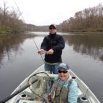 It was a cool, overcast, mostly still day with no water running on Lake Taneycomo on 11.6.2017. What wind there was came mostly from the east. You know the old saying, “the fish bite least when the wind’s in the east”. My son, Craig Randall, and I took a guided fishing trip that day with River Run Outfitters guide Gina Leitle. Gina is also a MTFA club member. As you probably know, River Run specializes in drift boat fishing. It’s nice and quiet in a drift boat with a feel of being out west on a Montana trip. Well, not exactly, but I think of drift boats being a western floating technique.