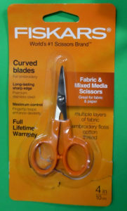 I am always trying something new and working on my current flies I purchased Fiskars Curved Blades for Embroidery scissors. They cut great. The Deer Hair, Body material is cut so close to the thread that the first couple of times I used for trimming, I cut my thread. At Wal-Mart, the cost is about $8.00. Give them a try if you are looking for curved blade scissors.