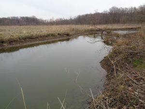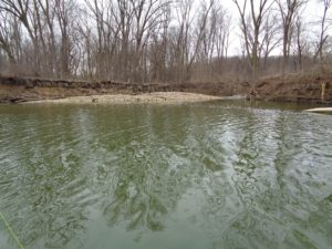 This area was a boggy, marshy area about 15,000 years ago, as the continental glaciers receded. In my mind, it still is although, much of it has been drained for farming, etc. I was amazed at the number of wetland areas we saw. My guess is that the mosquitoes are required by law to have wing numbers. There had been recent rain and snow which diluted the normally turbid water to the point that it was somewhat like the James or Finley Rivers locally. There was no gin clear water like Crane Creek and no free stone rivers like the White. More than once our fly lines were frozen to our rod guides.