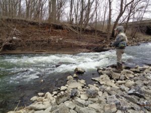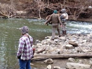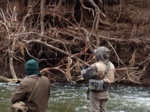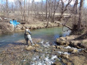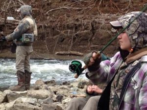 One fisherman I talked to, claimed that with the harsh weather, the bulk of the fish were laying back and were in a late spawn cycle. Another told me that we had probably missed the steelhead run by three weeks. So one guy was using the thermometer and the other was using the calendar. I guess, for this trip at least, it doesn’t matter whether we were too early or too late. We were just “too” something. I think a future trip should be planned to have flexible dates which will be pinned down at the last minute based on a report that the steelhead are running hot and heavy. This would require having everything packed and loaded, ready to leave with five minutes notice. This confusion about when the steelhead were running was no different from our local phenomenon concerning the white bass run. I know that several of our MTFA chapter members were planning to slay the white bass coming up from Tablerock Lake into the James River last week. The fish are late due to the cold water and I’ve heard that our people left empty handed. That’s fishing.