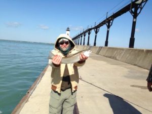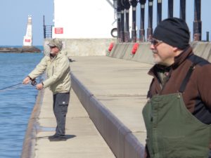 The closest place to Springfield to fish for steelhead is at Indiana Dunes National Lakeshore between Gary, Indiana and Michigan City, Indiana. I had known about it for some time but just couldn’t muster the determination to try it out. One day, my fishing buddy Larry Olson said that a bucket list item for him was to catch steelhead. Now, my excuse to go up there was a reality. I said, “We’re going.”