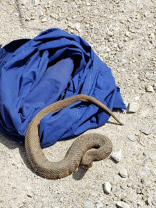 During the latest Stream Team check of Crane Creek’s environmental health, Russ Doughty met some MSU students/researchers who were collecting cottonmouths. He took this picture.