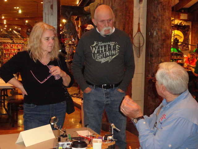 Larry Wegmann and Jerry Jester show flies to a couple.