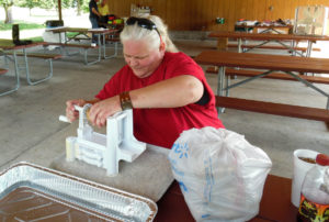 Patti Hayes peeling spuds