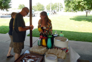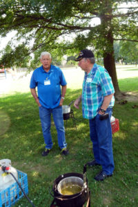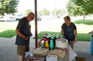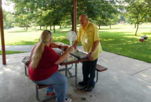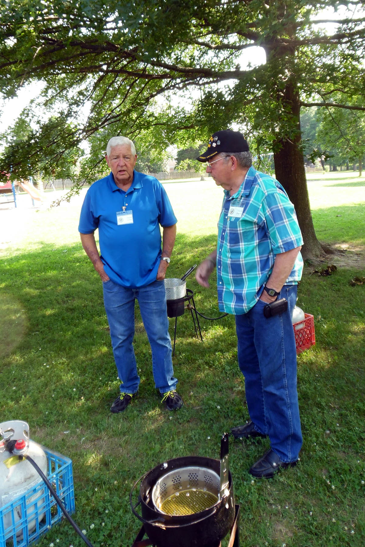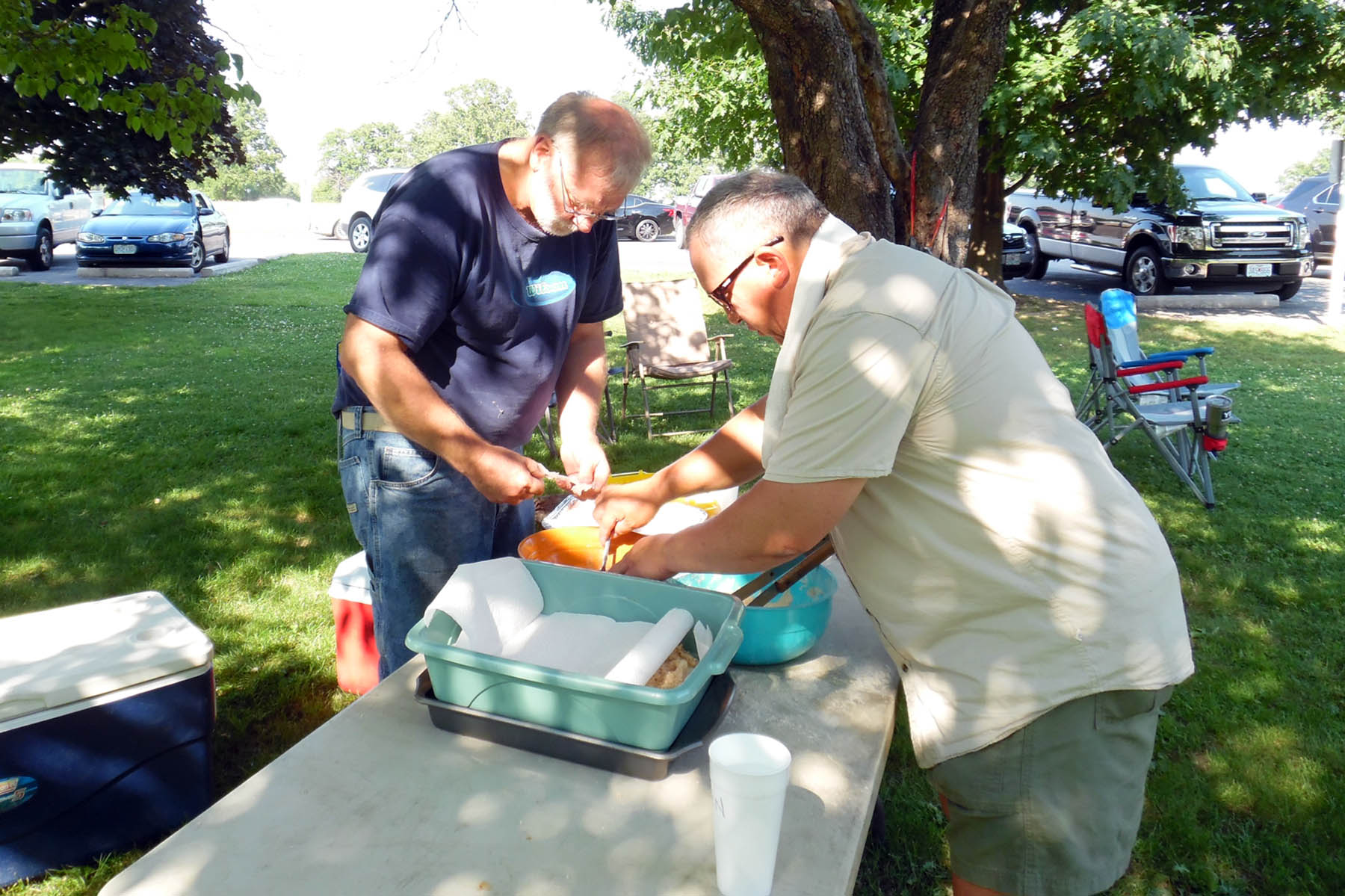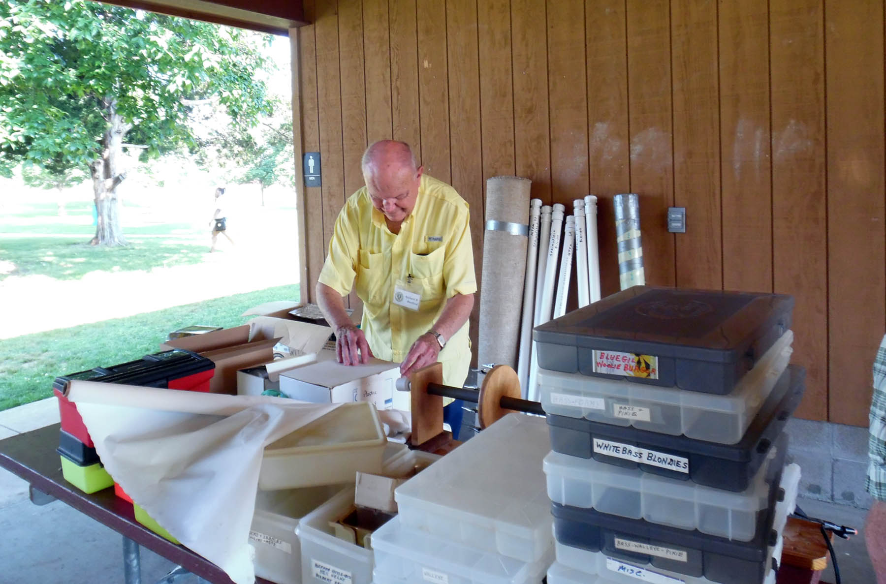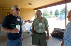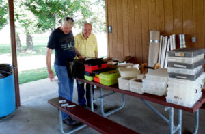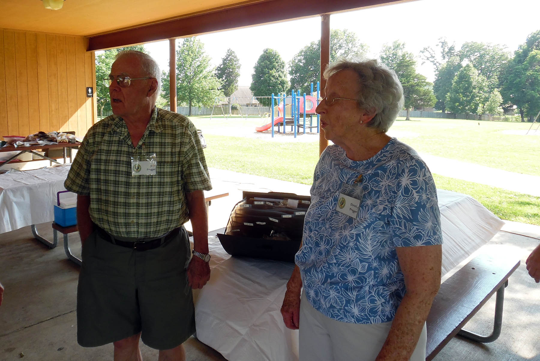 Bob Randall and Dick Deerfield looking for name tags.