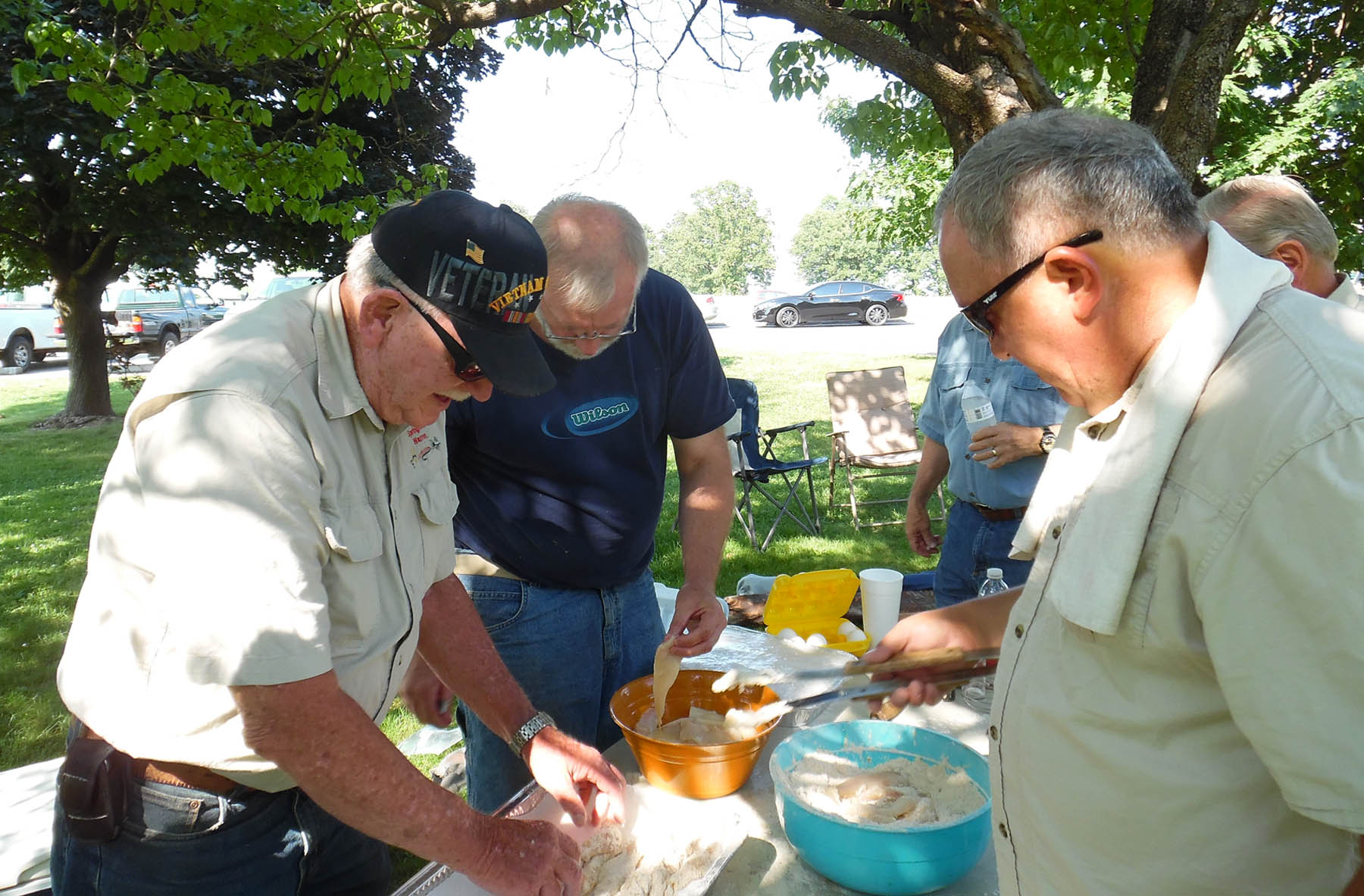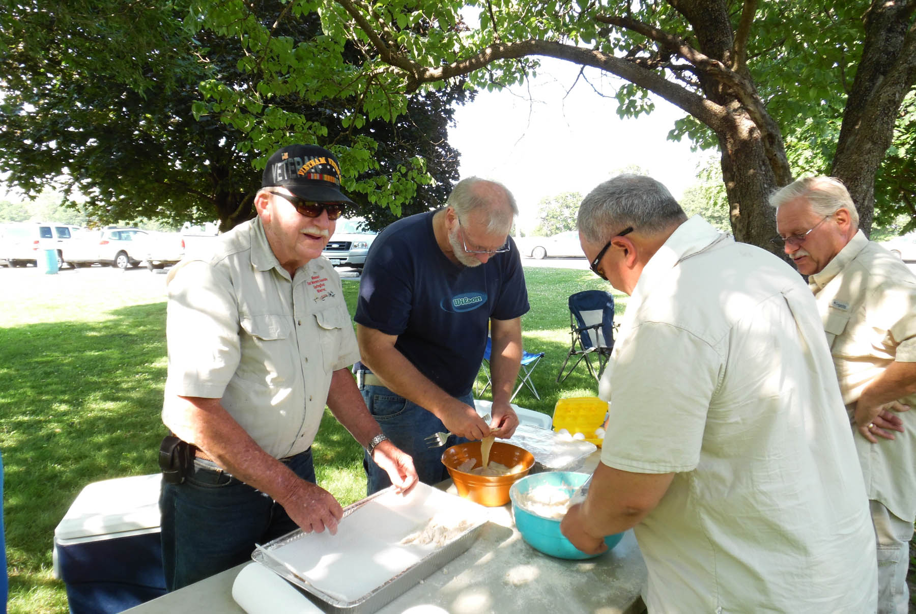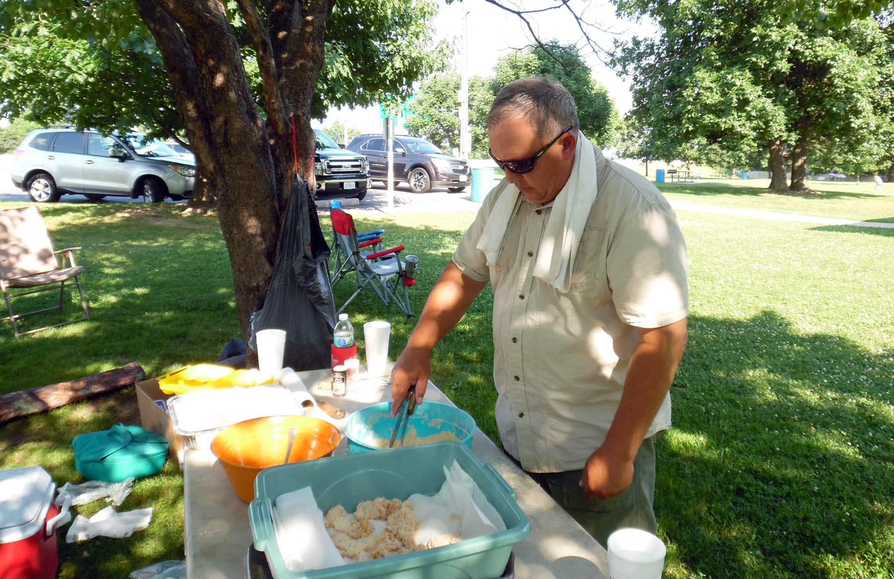 Joe Davis breading fish