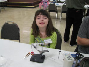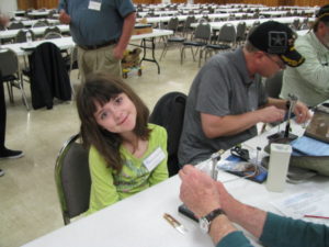 We usually don’t consider our business meetings as events but last night’s meeting had some good fly tying going on. Seven year old Rebecca Viard tied up a bead head wooly bugger with a read head and white tail. Even though she is posing for the picture here, she tied the fly pretty much on her own. Ron Leggins tied a wooly bugger and Mike Marriott tied a burlap fly. Instead of a regular program we had a lively discussion about future plans for the club.