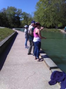 The 2017 Spring MSU Fly Fishing Class finished up this morning at Roaring River State Park. The water was high and murky. I didn’t see many fish being pulled in anywhere. Still we seemed to have a good time and students pulled together their casting/fishing skills. I forgot to bring my camera but a few photos were taken by others and forwarded to me.
