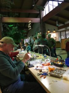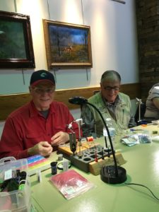 We tied flies at the Springfield Conservation Nature Center today. Tying were Dan Ditzler, Larry Wegmann, David Tucker, Bob Randall, Harry Morgan, Dennis Stead, Patty Hayes. No one took a head count but I’ll guess that there were at least 40 people interested enough to stop to watch and visit. It was a good day. Photos taken by David Tucker. Four photos.