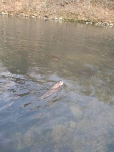 December 27, 2019 Bennett Spring State Park, Larry Olson, Dick Solomon, Keith Coffey, and Bob Randall. Lots of people because school was out for Christmas vacation. Fish bite was hot and cold. Change flies and it was hot again. Larry caught a couple of lunkers between the Gut Hole and the Whistle Bridge. Bob did well on a tiny dry fly late in the day. Other flies used: grey scuds, black wooly buggers, soft hackles, pellet flies.