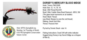 Dorsey’s Mercury Blood Midge is a great fly. The glass bead head represents an air bubble. The best way to fish this fly is to Dead drift with a strike indicator. Suggest that you tie a dropper fly off this midge like Dorsey’s Top Secret Midge.