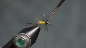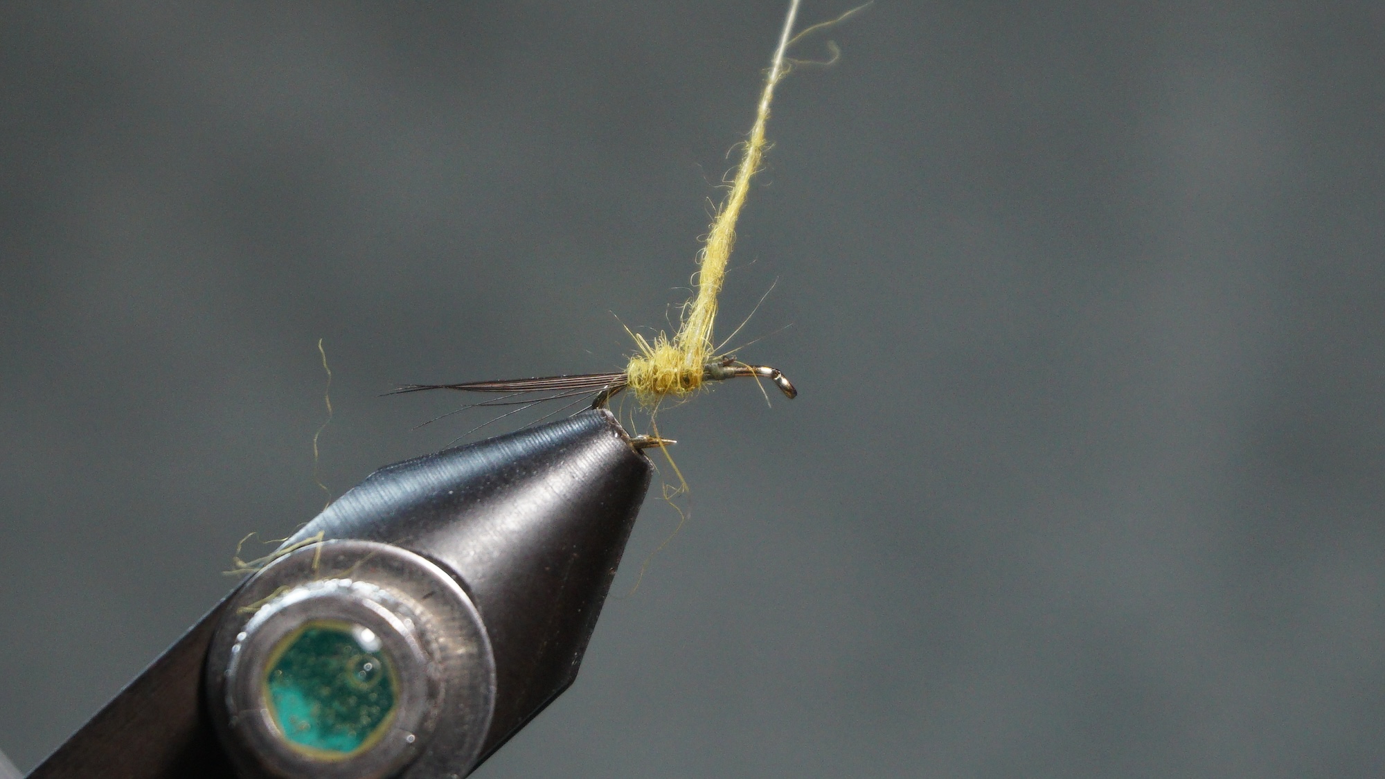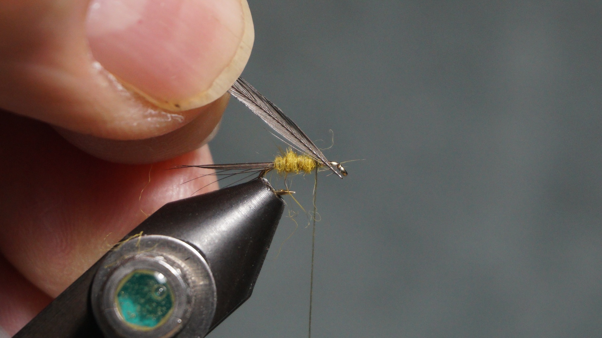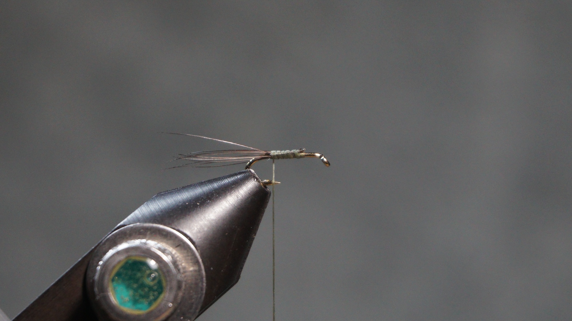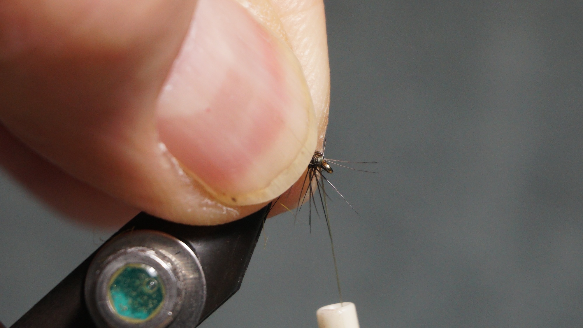 Front hackle: dark dun dry fly sized (1.5 hook gape) to hook
