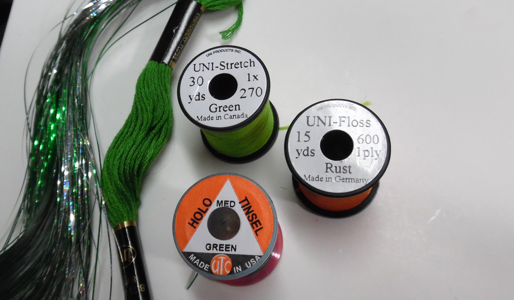 - Body: Green – UNI-Stretch, or UNI-Floss, or Embroidery Floss, or UTC-Holo,