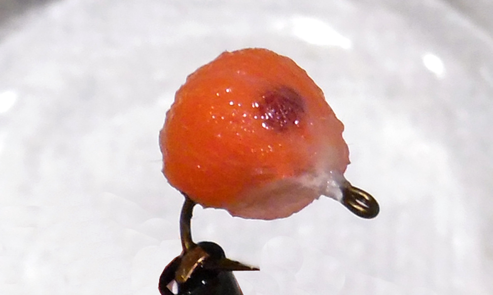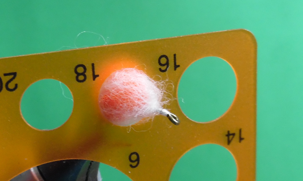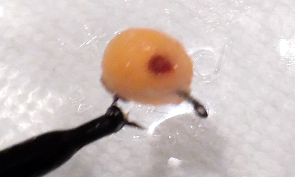 If you remember, I submitted a variation of Pat Dorsey’s Nuclear Egg. I was not happy with that variation and kept working on it to improve its look. I wanted it to be a close representation of a trout egg. The first thing I noticed was the eye in the natural egg. So my new variation would be called Blood Eye Nuclear Egg. Above shows you both the dry and wet version. After tying over 200 eggs, I finally got the desired look. Yes, there are many steps in tying this egg. But the number of steps is only to make tying this egg easier for you. I use a size 12 TMC2457 hook and the finished egg is between size 16 and size 18. I bought a new hackle gauge to get a more accurate size. And after the first 150 eggs, I bought a new burner.