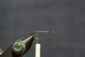 Clip and trim body to a taper; use a razor blade or scissors; take care not to cut the tail (if you cut the thread, just wrap it back on before you tie in the wings)
