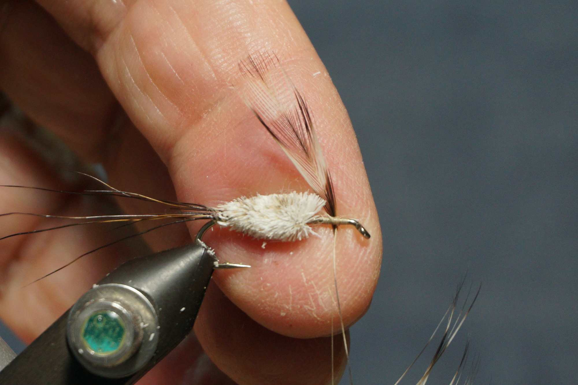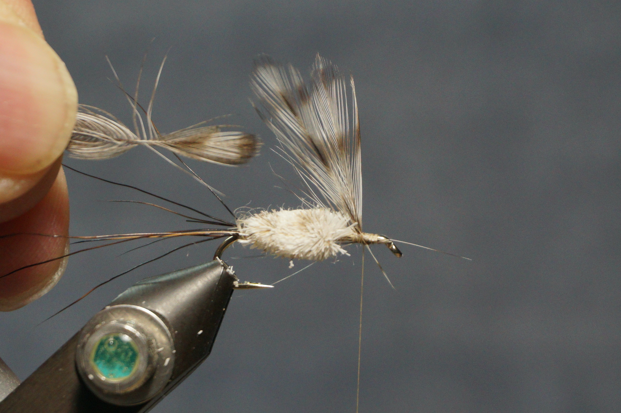 Wings: tips of grizzly hackle