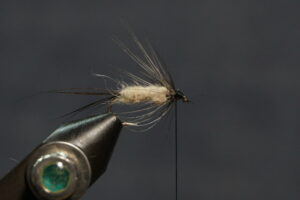 Tail: grizzly hackle fibers – or mix grizzly and brown