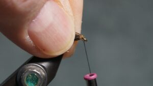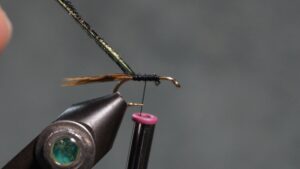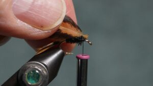 Touching wrap the herl to the tie in point; tie off and clip herl