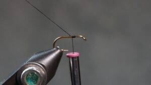 Tie in the thread an eye or so behind the eye